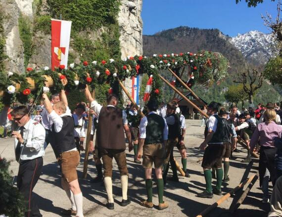 Die Maibaum-Kränze wurden in bewährter From von den Traunkirchner Kranzbinderinnen gebunden.