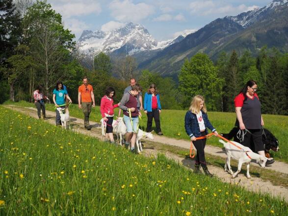 Im Anschluss erwartet dich ein besonderes Highlight: gemeinsam mit unseren Kuschelziegen spazieren wir zu malerischen Plätzen rund um unseren Hof. Dort zeigen wir dir auf anschauliche und kreative Weise das typische Verhalten unserer Ziegen und lassen dich in ihre Welt eintauchen.