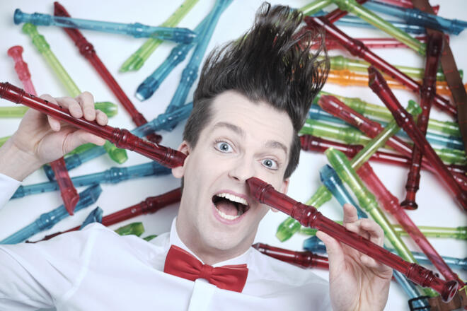Kann eine Flöte die Welt retten? Gabor Vosteen versucht es! Mit zahlreichen Plastikflöten, einer rockigen E-Flöte, der einzigen Leopardenbassflöte der Welt und frechen Flötenideen verbindet »The Fluteman« Poesie und Comedy zu einem verrückten, kongenialen Konzert für Jung und Alt.