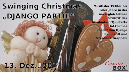 Die DJANGO PARTIE wurde 2007 als „letzte Gypsyswing-Band vor der Schweizer Grenze“ in Salzburg gegründet und hat sich in erster Linie der Musik der 1930er bis50er Jahre verschrieben. In der unvergleichlichen Stilistik des berühmten "Quintette du Hot Club de France“ von Django Reinhardt und Stéphane Grappelli spannen Wolfgang Schneider, Rudi Renger und Florian Alber seit über 15 Jahren einen breiten stilistischen Rahmen. Neben bekannten Gypsyswing-Hits werden Jazzstandards, Bossa Nova und Musette-Walzer bis hin zu Pop- und Soul-Klassikern geboten.