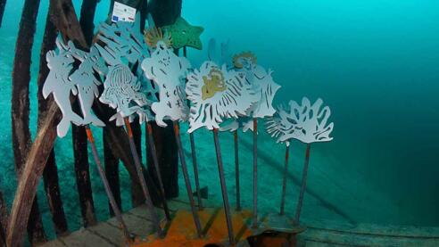 Christine Acker von den Austria Divers brachte die Idee dieser einzigartigen Taucherattraktion ein. Der Obmann des Tauchkompetenzzentrums, Günter Oberschmied kümmerte sich sofort im die Umsetzung und nahm Kontakt mit Herrn DI Josef Stallinger von der HTL Vöcklabruck auf. Für die gestalterische Umsetzung konnte die Salzburger Künstlerin Mag. Isabella Heigl gewonnen werden.