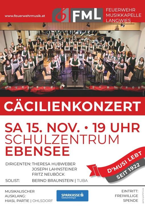 Am Samstag, den 15. November 2025, um 19:00 Uhr, konzertieren die Musikerinnen und Musiker der Feuerwehrmusikkapelle Langwies im Festsaal des Schulzentrums Ebensee. Wie in den vergangenen Jahren auch, ist die Kapelle bemüht, den Konzertbesucherinnen und Konzertbesuchern ein abwechslungsreiches und spannendes Konzerterlebnis zu bieten.