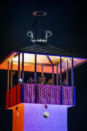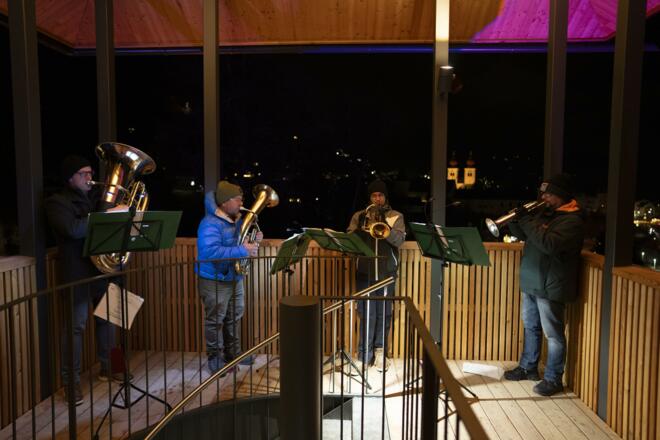 Erleben Sie ein einzigartiges musikalisches Erlebnis, wenn das Bläserensemble von hoch oben im Aussichtsturm des Barbara-Egger-Parks besinndliche Adventlieder spielt.