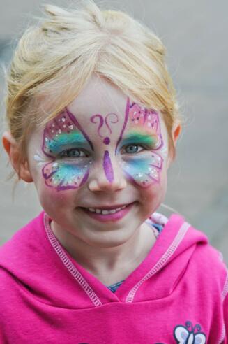 Sabine Borgogno zaubert mit viel Geschick, farbenfrohe Kunstwerke in die Gesichter der Kinder.