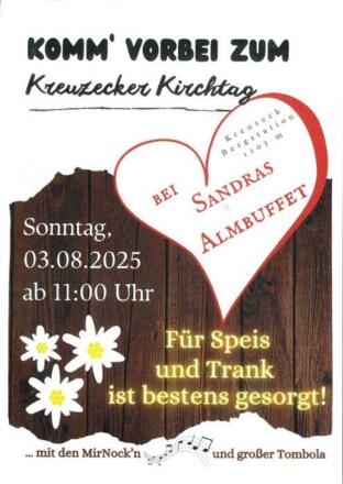Herzliche Einladung zum "Kreuzecker Kirchtag" bei Sandra´s Almbuffet auf der Bergstation der Kreuzeckbahn.