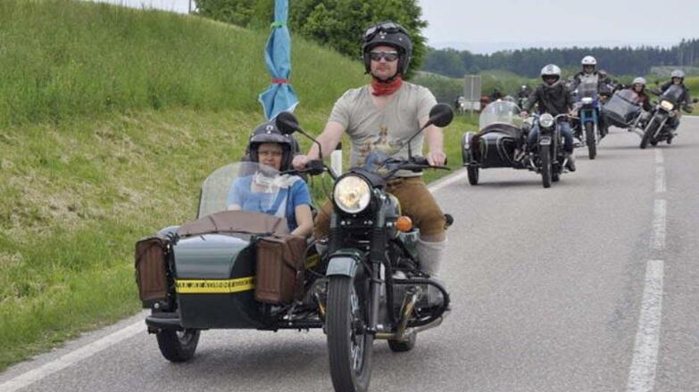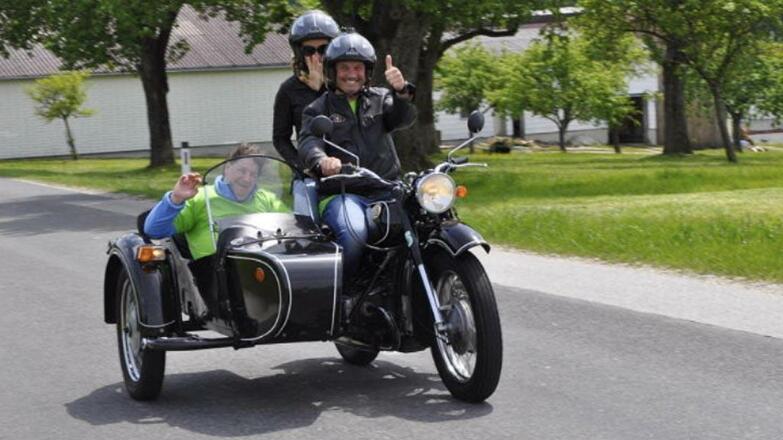 Bewohner von Assista machen im Motorrad-Beiwagen oder im Cabrio eine einstündige Fahrt durch den Hausruck.
