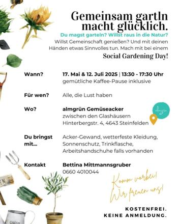 Beim Social Gardening Almtal kannst du Stress abbauen, deine mentale Gesundheit stärken und dich beim gemeinsamen Werkeln mit anderen austauschen!