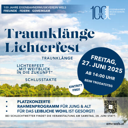 Ab 14 Uhr finden beim Trodatsteg Traunklänge (= Platzkonzerte) statt. Den Beginn machen die Vielharmonics, das Jugendorchester des Musikvereines.