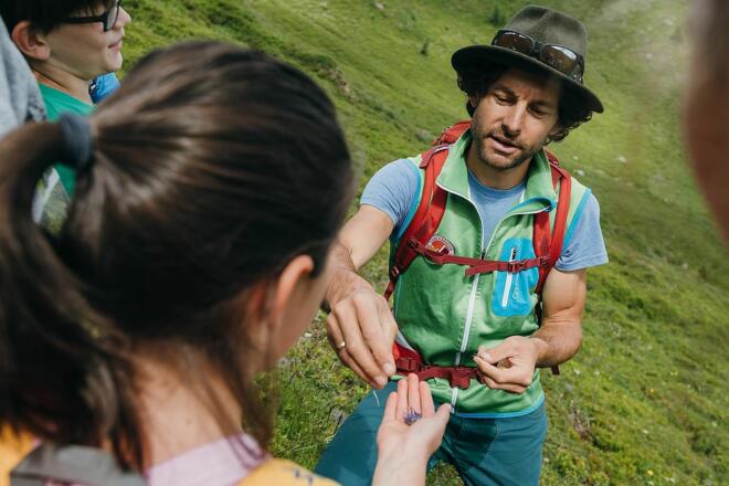 Für Kinder gut verständlich erläutert ein/eine Biosphärenpark-Ranger:in zahlreiche