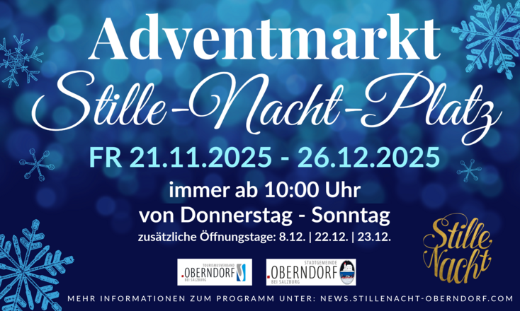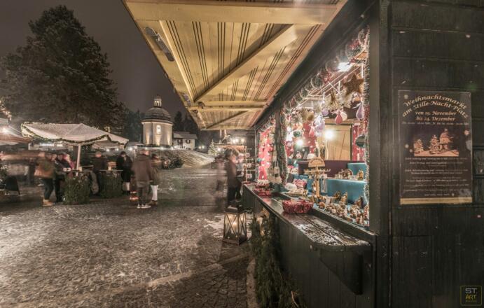 Der Stille Nacht Adventmarkt ist etwas ganz Besonderes, 20 Weihnachtsstände sind rund um die wunderschöne Stille Nacht Kapelle, bei der einst das weltberühmte Weihnachtslied "Stille Nacht! Heilige Nacht!" das erste Mal erklungen ist, aufgebaut, es gibt ausgewähltes Kunsthandwerk, weihnachtliche Schmackerl, Adventkranzsingen und traditionelle Weihnachtsklänge wie Tumbläser- und Klarinettenkonzerte.