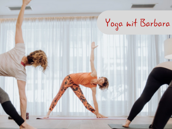 Yoga mit Barbara. Jeden Montag von 17:00 - 18:15 Uhr und von 18:30 - 19:45 Uhr im Turnsaal der Volksschule Treffling. Infos und Anmeldung bei Barbara Lax, Tel. +43 660 816 13 17 oder unter barbara.lax@tangern.at