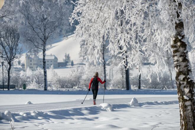 Erlernen der Langlauf Grundkenntnisse in der Diagonal Technik.