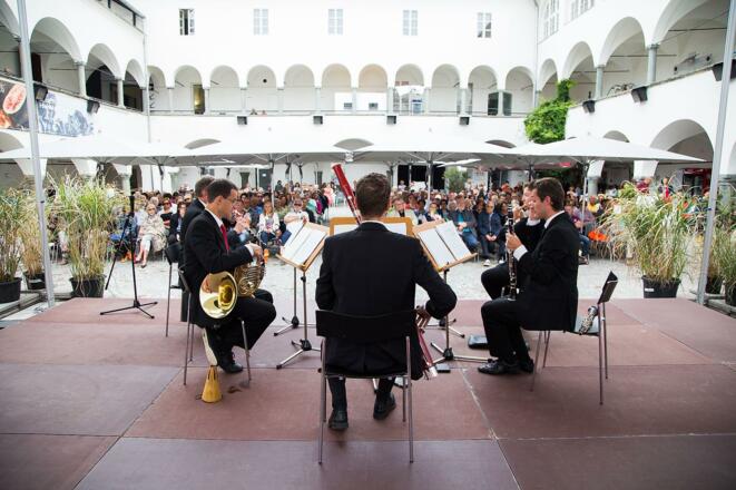 Der bezaubernde Arkadenhof des Museums Moderner Kunst schafft den passenden Rahmen für ein unvergessliches Musikerlebnis.