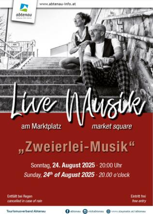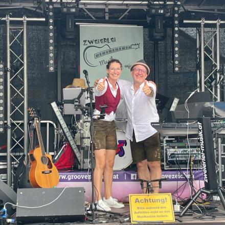 Der Marktplatz wird zur Tanzfläche. Es spielt die Gruppe "Zweierlei-Musik" ihre Kultsongs vergangener Zeiten. Eine Reise beginnend bei der Volksmusik über Austropop, Country bis hin zum Folk Rock/Pop und Stücken neueren Datums.