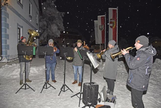 musikalische Umrahmung der Weisenbläser, Kinderprogramm, Mitgestaltung der Volksschule.