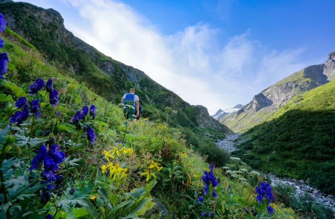Weiter geht es auf einem alten Steig, der nicht immer leicht zu finden ist. Die Route führt durch Bergsturzhalden, Zwergstrauchheiden und artenreiche alpine Rasen, vorbei am „Saukopf“, immer begleitet vom Tosen des Untersulzbaches. Nicht selten können auf der gegenüberliegenden Seite Hirsche oder Gämsen beobachtet werden. Die Vegetation ist hier sehr interessant; es können besonders seltene Pflanzenarten wie Gämswurz, Türkenbundlilie oder verschiedene Orchideenarten entdeckt werden. Je weiter wir talaufwärts kommen, umso karger wird die Landschaft.