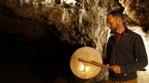 In Begleitung der südtiroler Schamanin Karin Raffeiner hat Gerald Frank eine Trommel auf schamanische Art und Weise selbst gebaut. Ihr Effekt im Zusammenspiel mit seinem heilerischen Wirken hat schon viele Menschen begeistert. Seit 2022 darf sie ihre Kraft auch im Schulerloch entfalten.