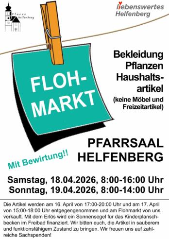 Die Artikel werden am 16. April von 17 - 20 Uhr und am 17. April von 15 - 18 Uhr entgegengenommen und am Flohmarkt von uns verkauft.