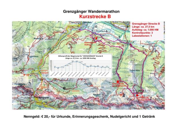 Streckenlänge kurze Strecke B: ca. 27,5 km | Höhenmeter im Anstieg: ca. 1090 m;