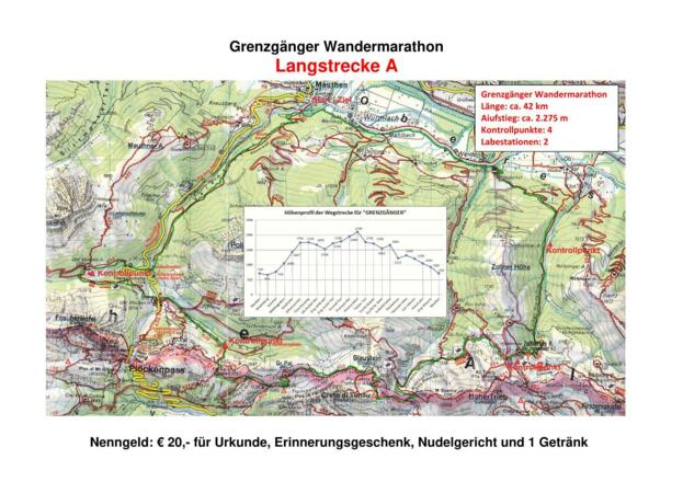 Streckenlänge lange Strecke A: ca. 42,4 km | Höhemeter: im Anstieg: 2.273 m; im Abstieg: 2.273 m