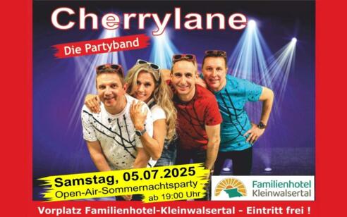 Zusammen mit den rund 100 mitgereisten Fans lädt die Vierköpfige Formation alle Gäste, Tanz- und Partyfreunde aus dem Kleinwalsertal zu einer stimmungsvollen Sommernachtsparty ein. Mit über 50 Auftritten jährlich ist Cherrylane eine der beliebtesten Partybands Süddeutschlands.