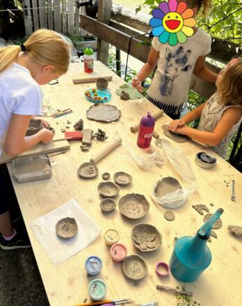 Kreiere an einem Vormittag deine eigenen kleinen Kunstwerke aus Ton! Nach einer Pause von drei Wochen, in der deine Werke getrocknet und gebrannt werden, treffen wir uns erneut, um sie mit Glasuren zum Leuchten zu bringen. Der Vorteil: Die Farben haften besser und du kannst dich voll auf das Malen konzentrieren! Bei Schönwetter sind wir im Freien kreativ!