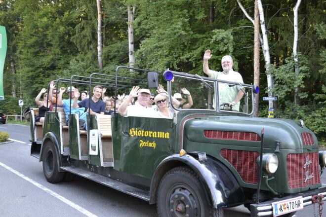 Der Oldtimerbus fährt von Juli und August jeden Mittwoch vom Klopeiner See in die Bezirksstadt. Nach einer gemütlichen Klopeiner See-Rundfahrt geht´s weiter Richtung Völkermarkt.