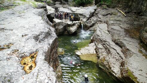 Fühlt ihr das Adrenalin? Wie es durch euren Körper pumpt. Spürt ihr euren Herzschlag? Wie er immer schneller wird. Und dann: Tief durchatemen ... und Sprung! Eintauchen ins eiskalte Nass. Das ist Canyoning! Ein großes Naturerlebnis mit kleinem Nervenkitzel. Also: Nix wie rein in den Neoprenanzug und auf geht's ins Abenteuer!