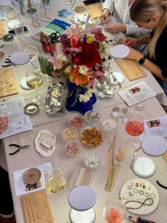 In entspannter Atmosphäre mit maximal 10 Teilnehmer:innen gestalten wir gemeinsam wunderschöne Schmuckstücke. Für das passende Ambiente sorgen feine Snacks, erfrischende Drinks und natürlich jede Menge kreative Energie.