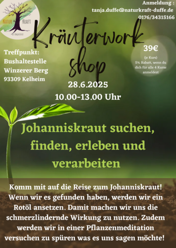 (5% Rabatt bei der Buchung von allen 4 Kursen, Termine: 17.5. Gundermann, 28.6.25 Johanniskraut, 15.8.2025 Spitzwegerich, 18.10.2025 Beifuss)