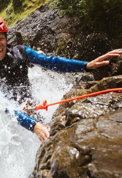 Kurz vor der Hütte zweigen wir links ab und erreichen nach kurzer Zeit den Felseinstieg. Ab hier folgen wir den Markierungen direkt am Fels. Einige kurze Kletterpassagen sind zu bewältigen, bevor wir den Gipfelgrat erreichen. Der letzte Abschnitt verläuft teilweise ausgesetzt, aber in wenigen Minuten stehen wir am Gipfelkreuz und werden mit einem atemberaubenden Aus- und Rundumblick belohnt.