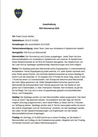 RSV Sommer-Cup - 30. Juni 2025 bis 21. September 2025