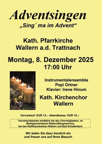Vorverkaufskarten erhätlich bei den Chormitgliedern, im Markgemeindeamt Wallern, bei den Raiffeisenbanken Wallern und Bad Schallerbach.
