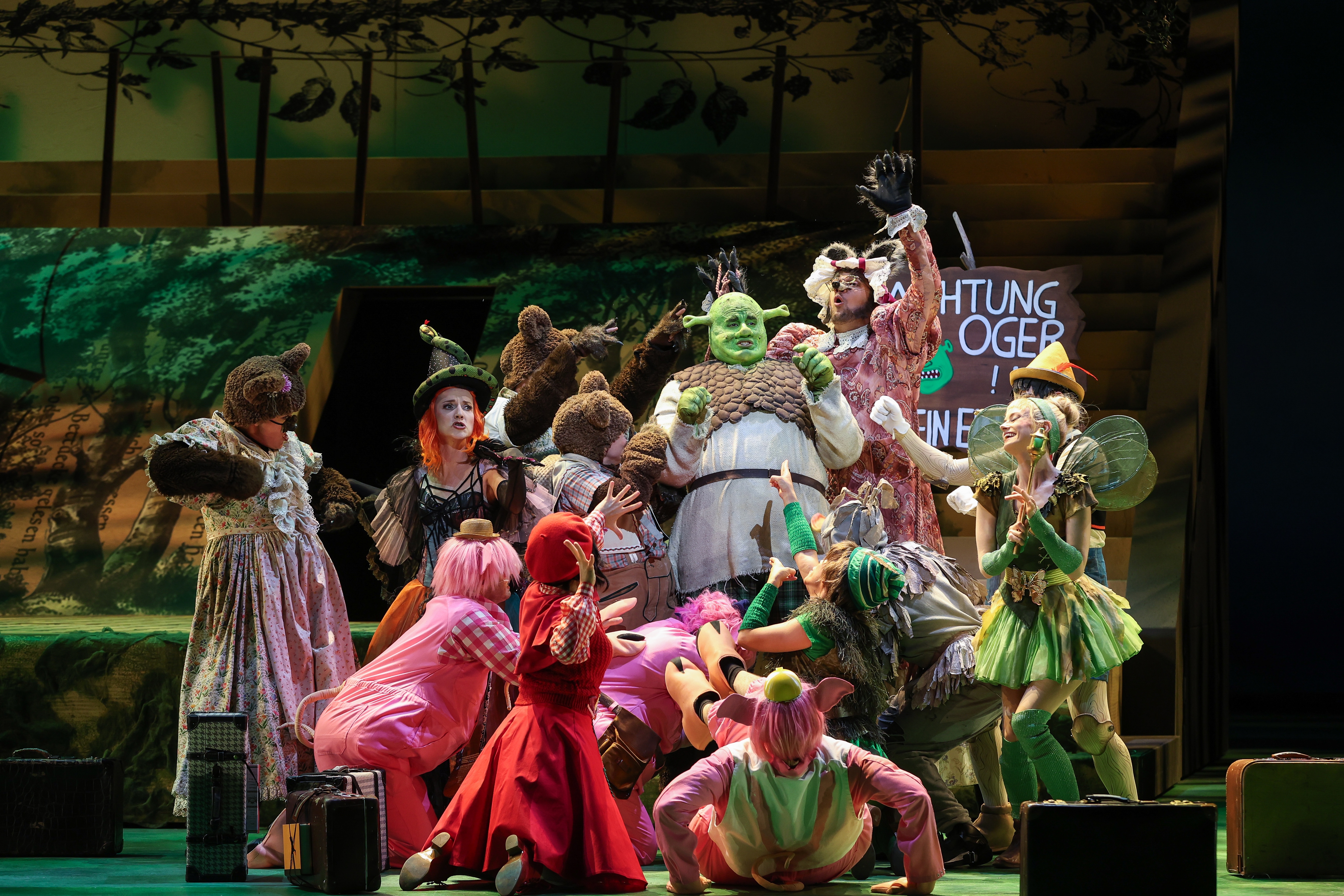 Dem Oger Shrek wird von seinen Eltern vermittelt, der Rest der Welt lehne Oger ab. So richtet er sich als Single in einem hübschen, stinkenden Sumpf ein, bis seine Ruhe von Dutzenden Märchenwesen gestört wird, die von Lord Farquaad aus der Stadt Duloc vertrieben wurden. Auf der Reise nach Duloc gesellt sich ihm ein vorurteilsfreier, aber redseliger Esel bei – der Beginn einer unwahrscheinlichen Freundschaft. Farquaad verlangt als Gegenleistung für die Rückführung seiner Untertanen, dass Shrek Prinzessin Fiona aus der Höhle eines Drachens befreit, denn er will sie heiraten. Shrek und Esel bewältigen diese Aufgabe tatsächlich und finden unterdessen beide auch noch ihre Traumfrau. Und wer geht leer aus? Bösewicht Farquaad natürlich!