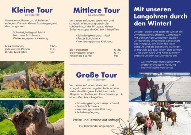 Geh auf Schritt & Tritt mit Birgit's Langohren mit. Vertrauen aufbauen, streicheln und striegeln. Anschließend kleiner Spaziergang. Schwierigkeit: Leicht, normales Schuhwerk & Wetterangepasste Kleidung. Anmeldung: bis Donnerstag 12 Uhr unter info@taxenbach.at oder unter +43 664 5816844, Kosten: 5 € mit der Gästekarte, ohne Gästekarte 10 € !familienfreundlich!