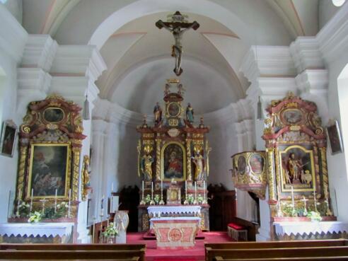 Das barocke Kleinod, das der Gottesmutter Maria geweiht ist, war früher eine Wallfahrtskirche und birgt in seinem Inneren einige Kostbarkeiten. Mesner Hubert Zach kennt seine Kirche sehr gut und bietet Interessierten in einer ca. halbstündigen Führung einen Einblick in die Geschichte und die Geschichten rund um diese Kirche.