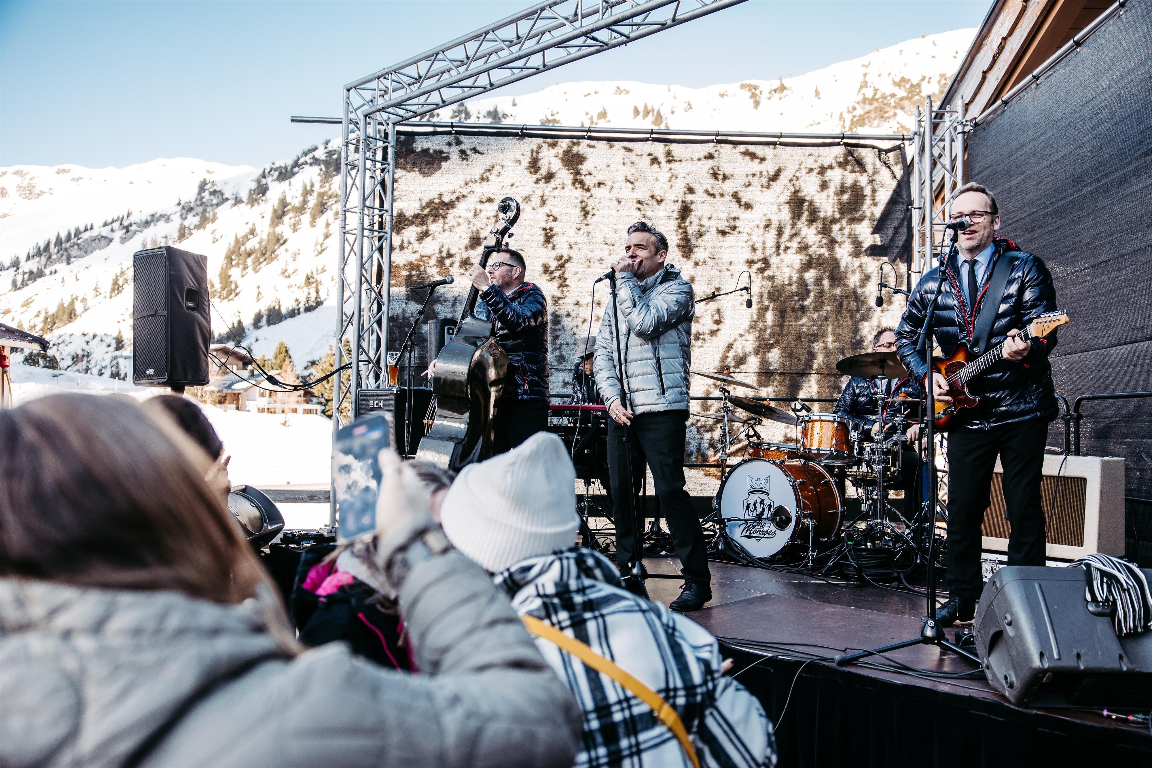 Am Nachmittag eines perfekten Skitags wartet ein ganz besonderes Highlight auf alle Gäste in Warth-Schröcken: Beim beliebten Ski & Concert sorgen The Monroes ab 15:00 Uhr auf der sonnigen Panoramaterrasse für ausgelassene Stimmung und musikalischen Hochgenuss.