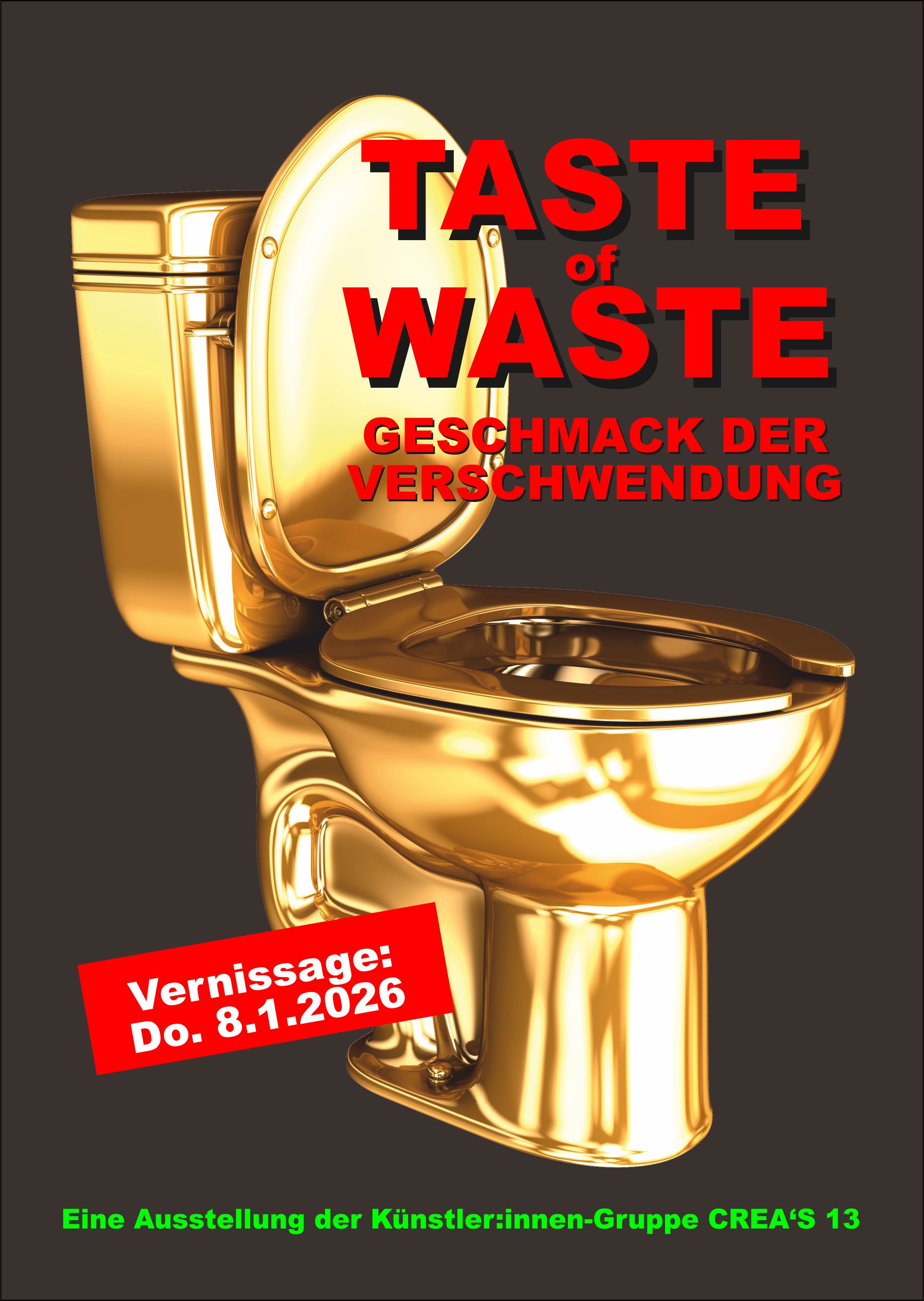 Überfluss erschöpft Sinne, Körper und Geist. Vergeudete Liebe, Worte, Zeit und Hoffnung. Unstillbare Gier, Neid und rastlose Blicke. Die goldene WC-Schüssel als Spiegel unserer Dekadenz. Glanz, der Leere verbirgt, Luxus, der krank macht. Künstler*innen zeigen, wie Verschwendung sickert - in Körper, Beziehungen, Umwelt und in unser Sein.