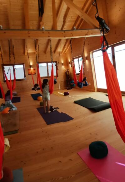 Auch hier kommt das Aerial-Flying Yoga nicht zu kurz.