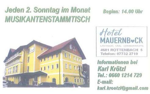 Informationen bei Karl Krötzl unter 0660/1214729 oder karl.kroetzl@gmail.com