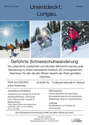 Treffpunkt: 10:00 Uhr vor dem Tourismusverband Salzburger Lungau Katschberg Büro, Infostelle St. Michael