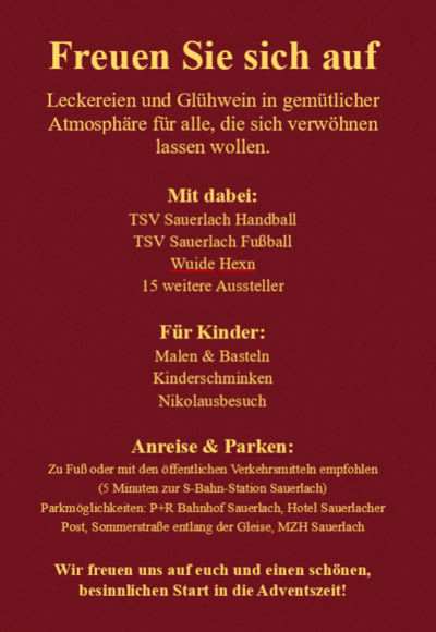 Genießen Sie die vorweihnachtliche Atmosphäre, schlendern Sie durch die Vielfalt handgefertigter Werke und lassen Sie sich dabei von besonderen Geschenken für sich selbst und die Menschen, die Ihnen am Herzen liegen, überraschen.