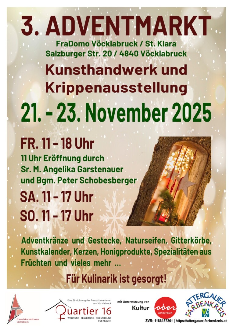 Der Attergauer Farbenkreis veranstaltet zum 3. Mal den Adventmarkt im FraDomo Vöcklabruck