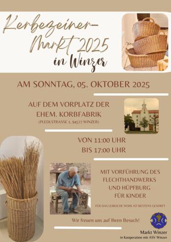 findet der Kerbezeiner-Markt 2025 auf dem Vorplatz der ehemaligen Korbfabrik (Pledlstraße 1) in Winzer auf ein Neues statt. Die offizielle Eröffnung des Kerbezeiner-Marktes wird durch Herrn Bürgermeister Roith im Anschluss an den 10.00 Uhr-Gottesdienst stattfinden.