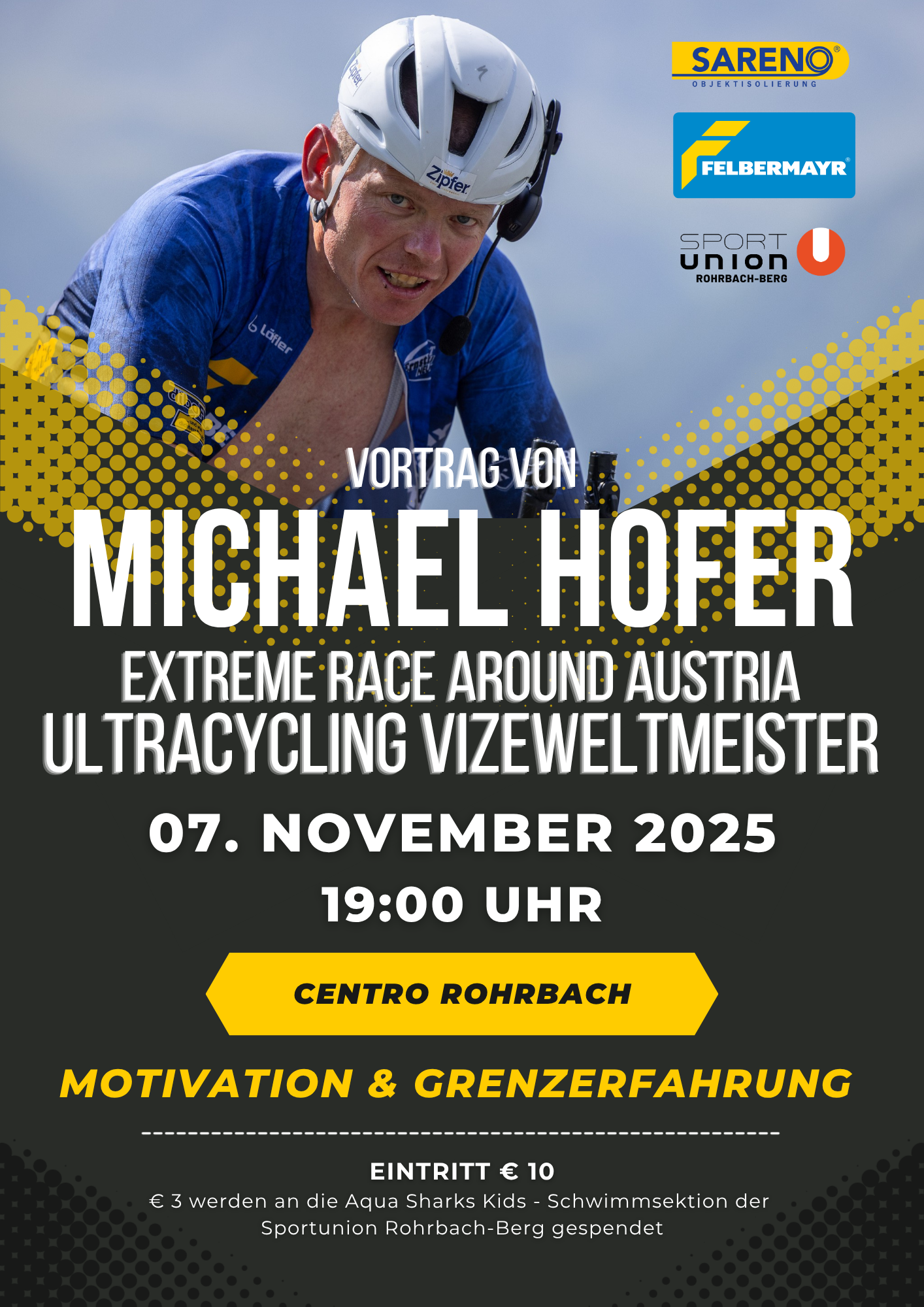 Michael Hofer ist Ultracycling Vizeweltmeister und gibt an diesem Abend spannende Einblicke rund um die Themen Motivation und Grenzerfahrung.
