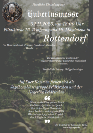 Alle Jäger, Jagdhornbläser, Freunde, Familie und Interessierte sind zu dieser Messe herzlich eingeladen.