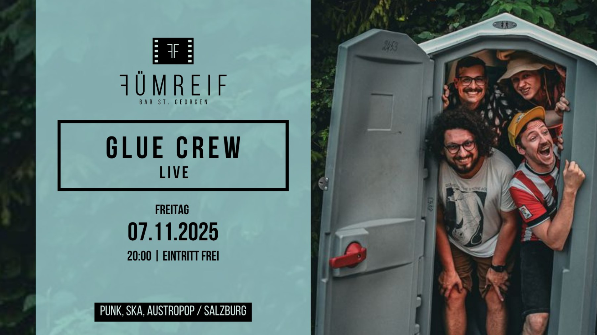 Die Boyband aus Salzburg ist zurück im Fümreif! Wir freuen uns auf das zweite GLUE CREW Konzert und die einzigartige Mischung aus Punkrock, Ska, Austropop und Schmäh.—Eintritt frei!