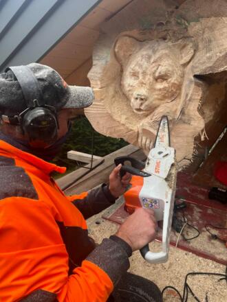 Die Baernsagla, 3 Burschen zwischen 35 und 40 Jahren schnitzen seit nunmehr 7 Jahren mit ihren E-Motorsägen große und kleine Kunstwerke.