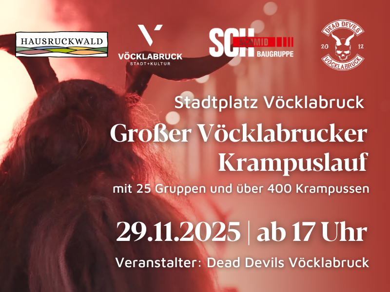 Am 29.11.2025 wird es wieder schaurig am Vöcklabrucker Stadtplatz. Der große Vöcklabrucker Krampuslauf kehrt zurück und mit ihm 25 Gruppen und über 400 Krampusse.
