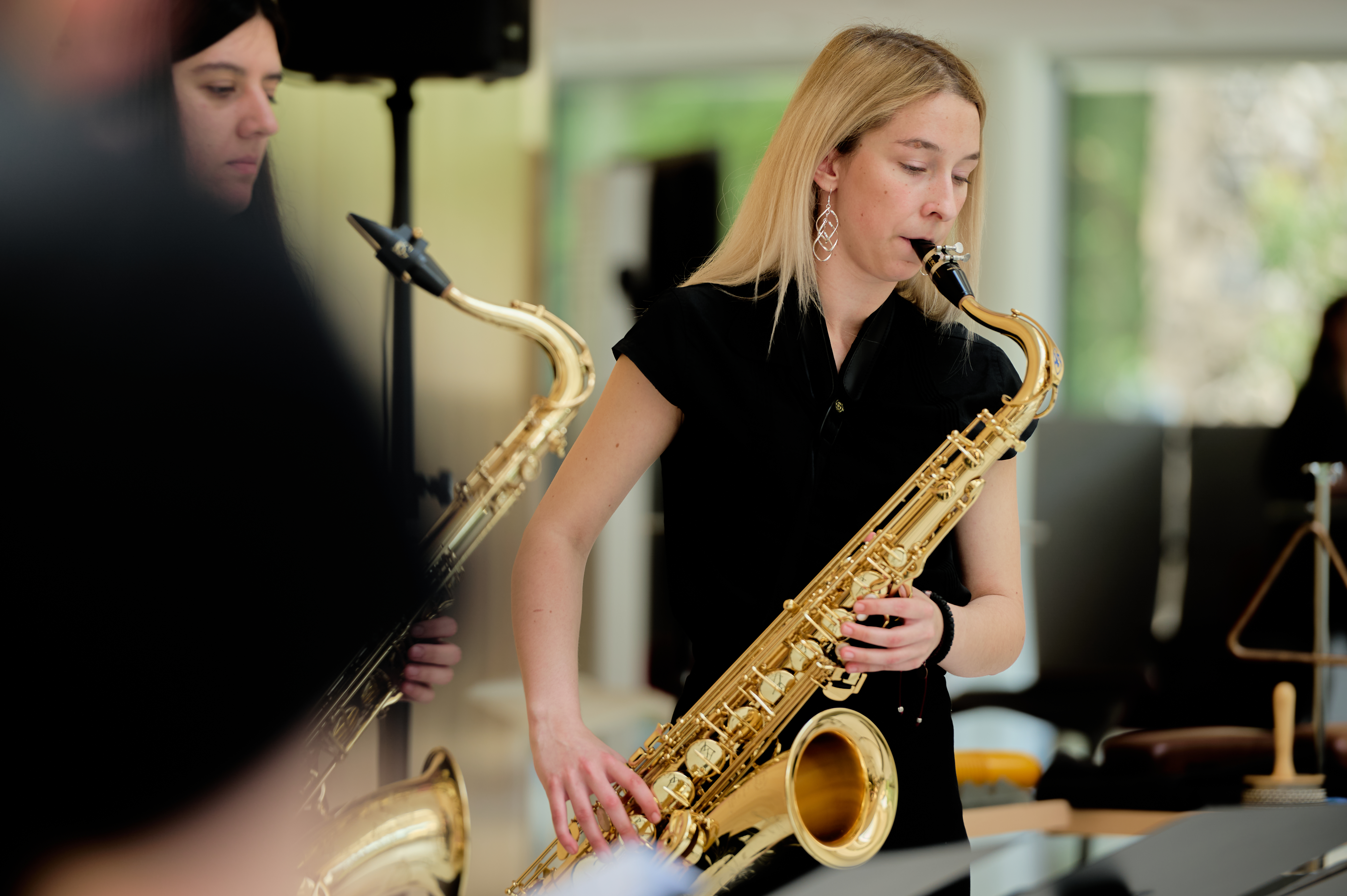 Studierende der Saxophonklasse Fabian Pablo Müller an der Stella Musikhochschule musizieren im Kleinen Saal der Stella.